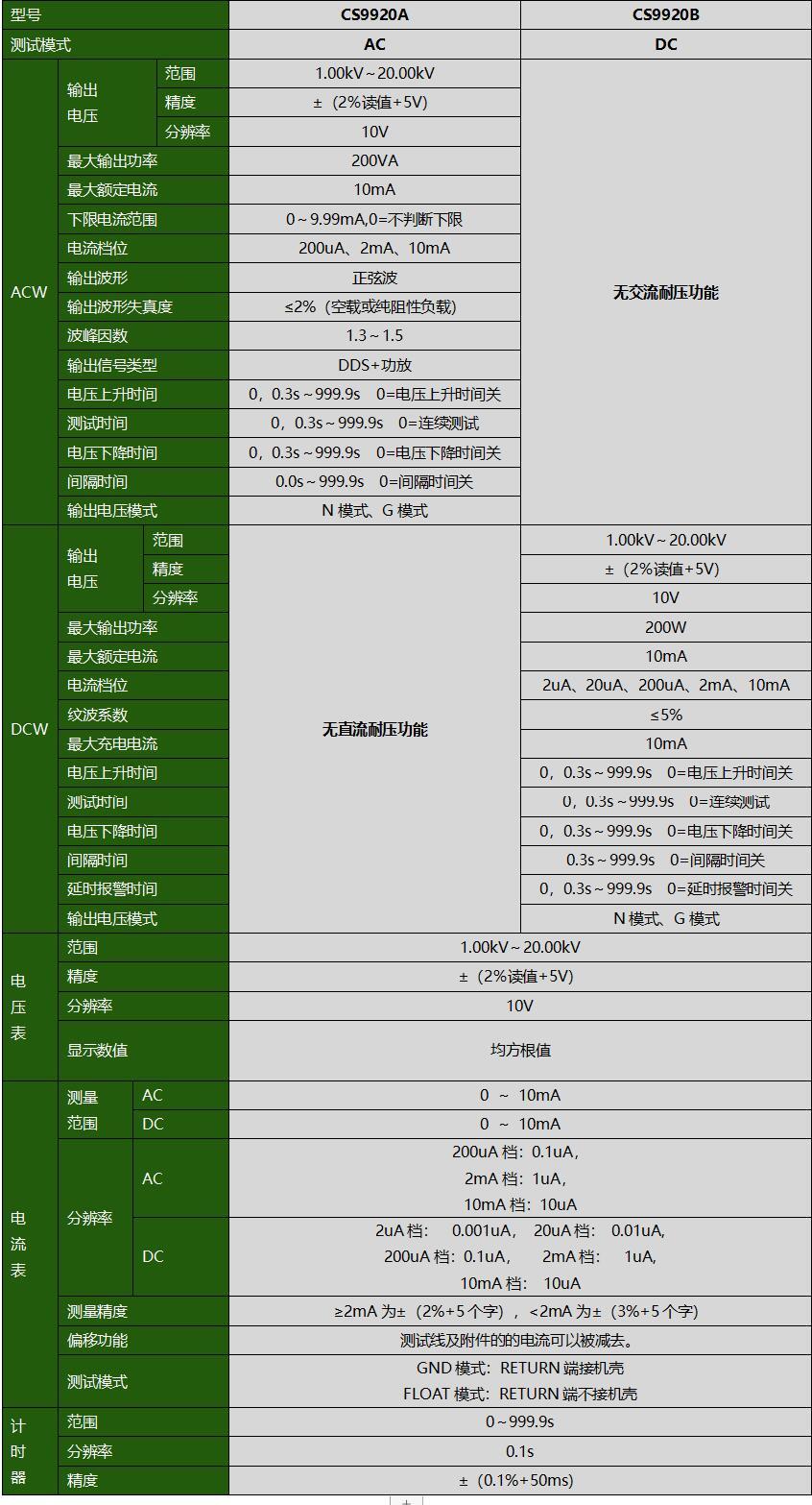 CS9920A/CS9920B程控超高压测试仪产品参数