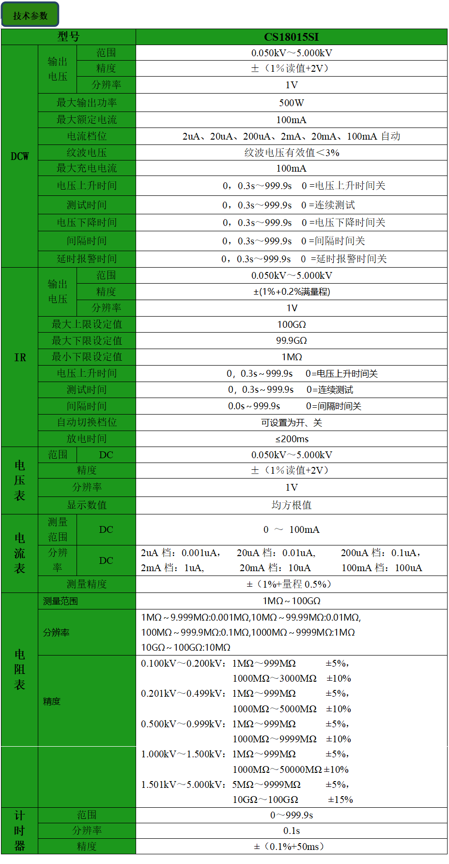 CS18015SI 电容器绝缘耐压分析仪产品参数