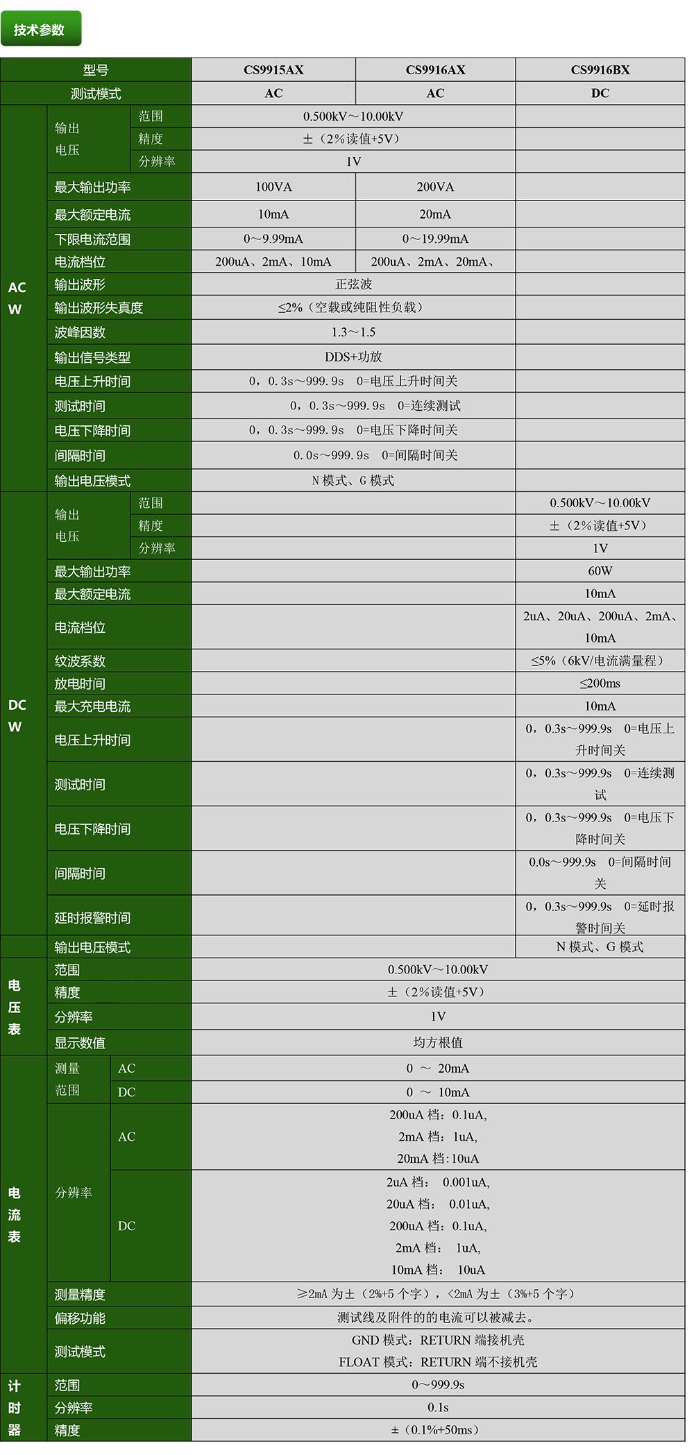 CS9915AX程控耐压测试系列产品参数