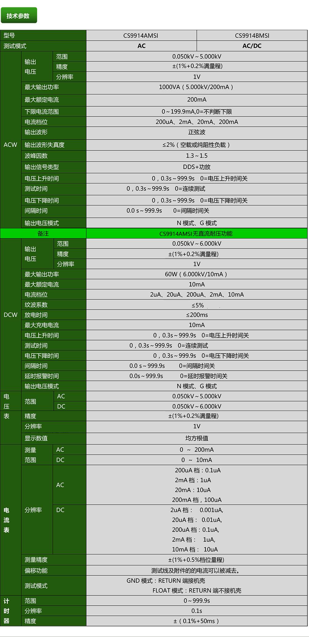 CS9914AMSI/BMSI耐压测试仪产品参数