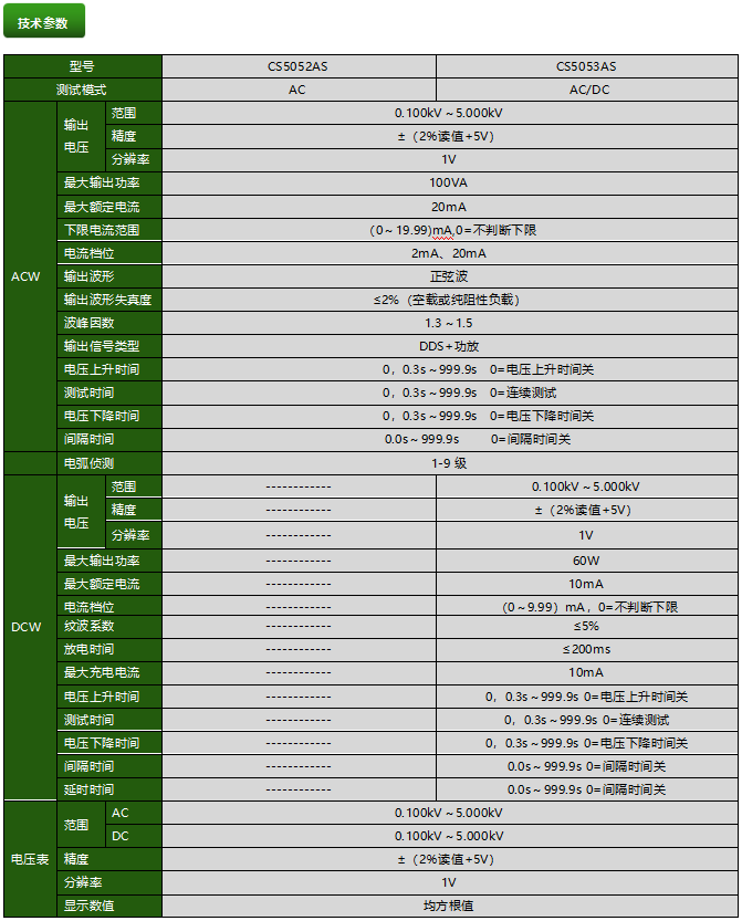 CS5052AS/CS5053AS耐压测试仪产品参数