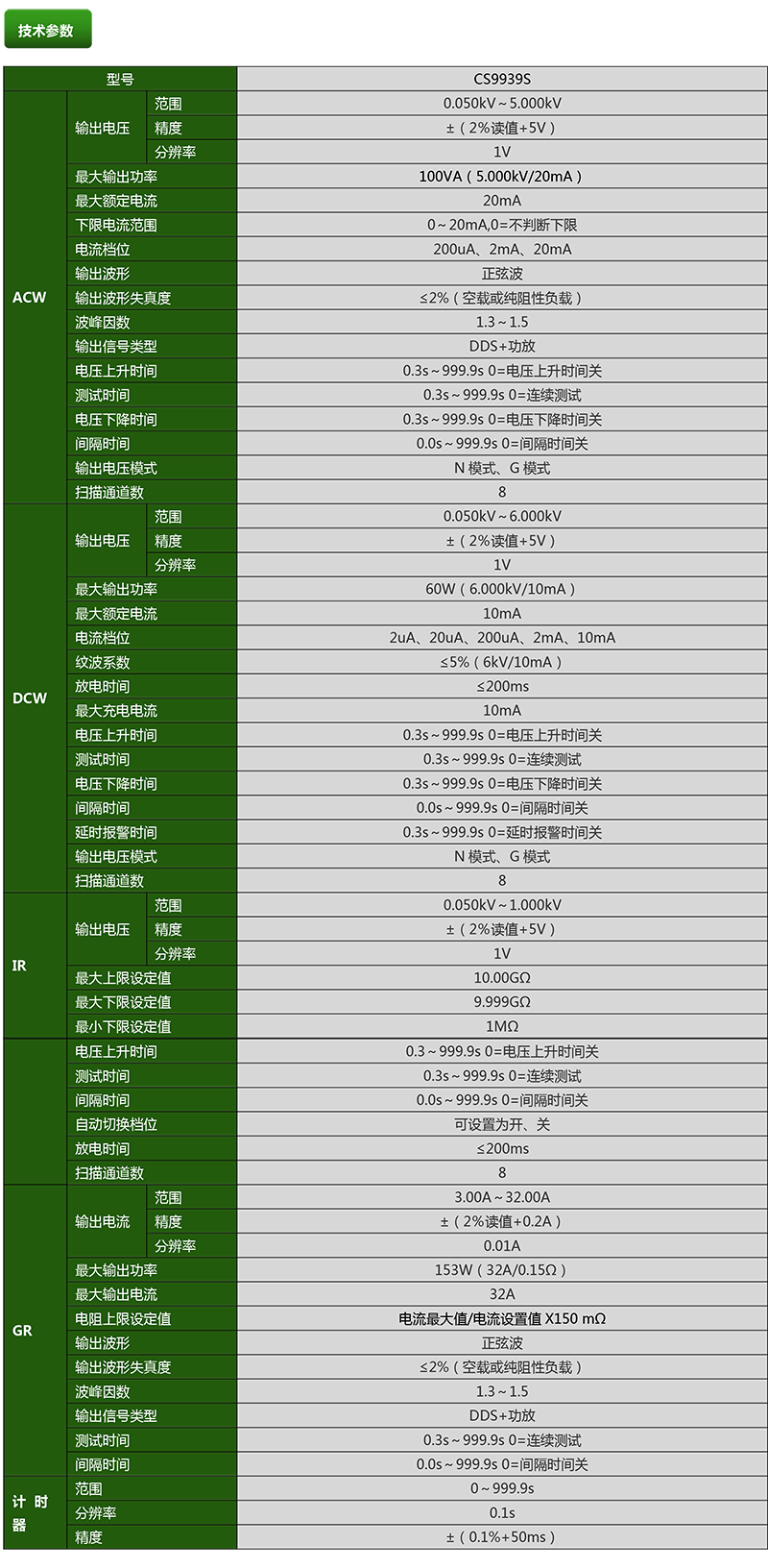 l具有双频综合测试,频率范围50 Hz、60 Hz