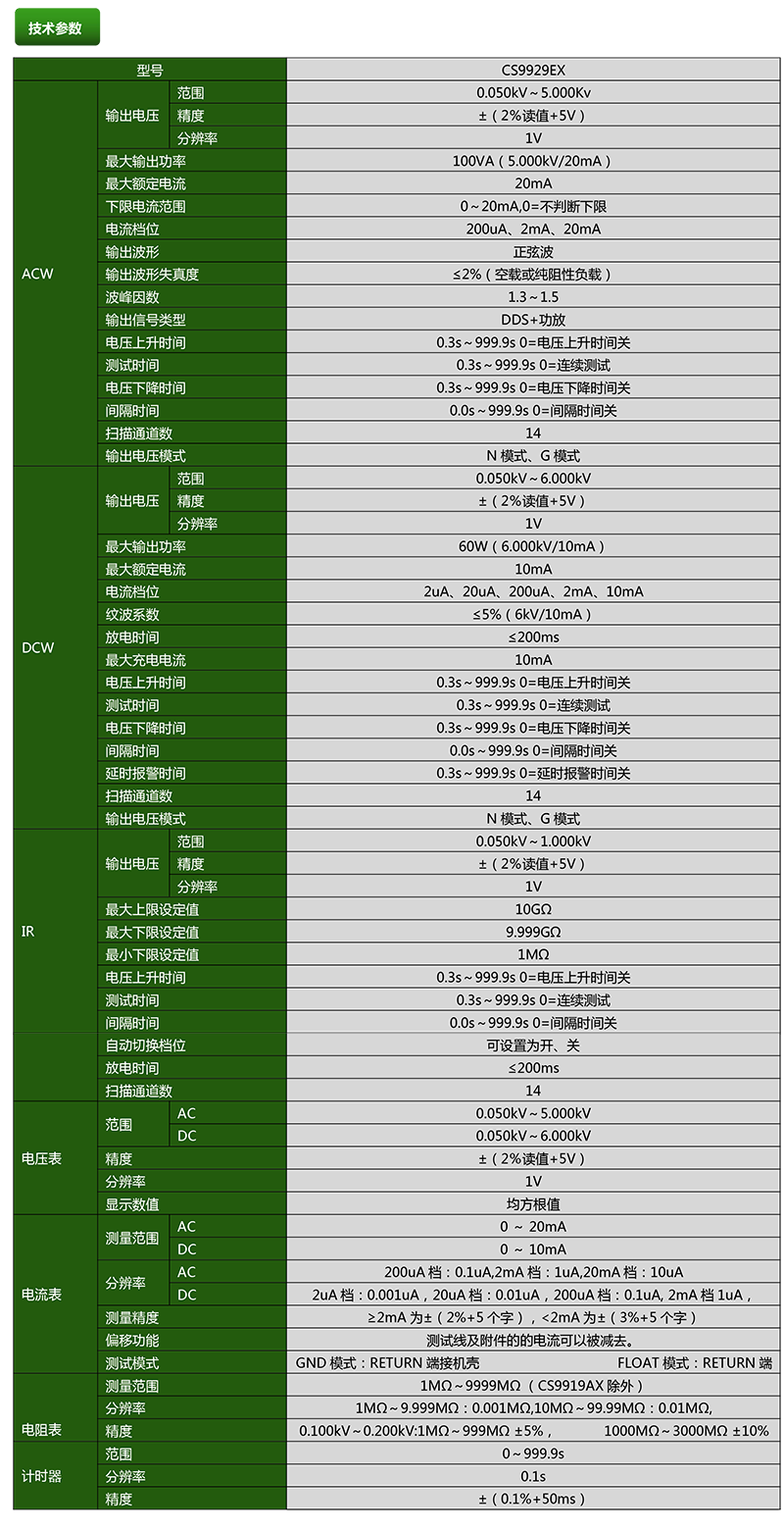 CS9929EX多路绝缘耐压测试仪产品参数