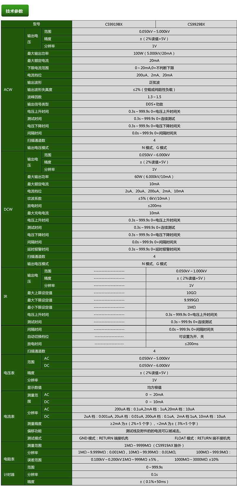 CS9919/29/BX多路绝缘耐压测试仪产品参数