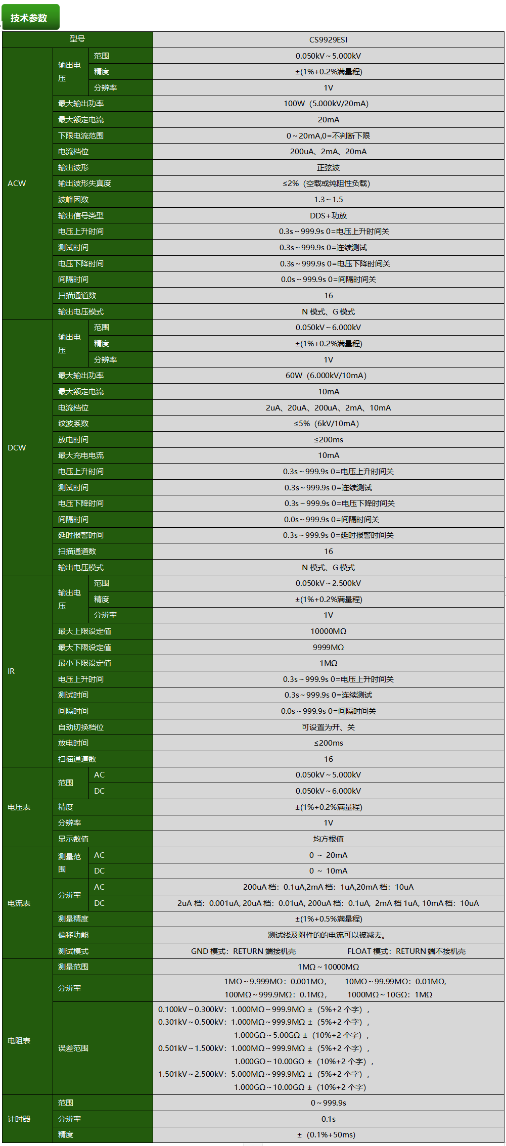 CS9929ESI程控多路绝缘耐压测试仪产品参数