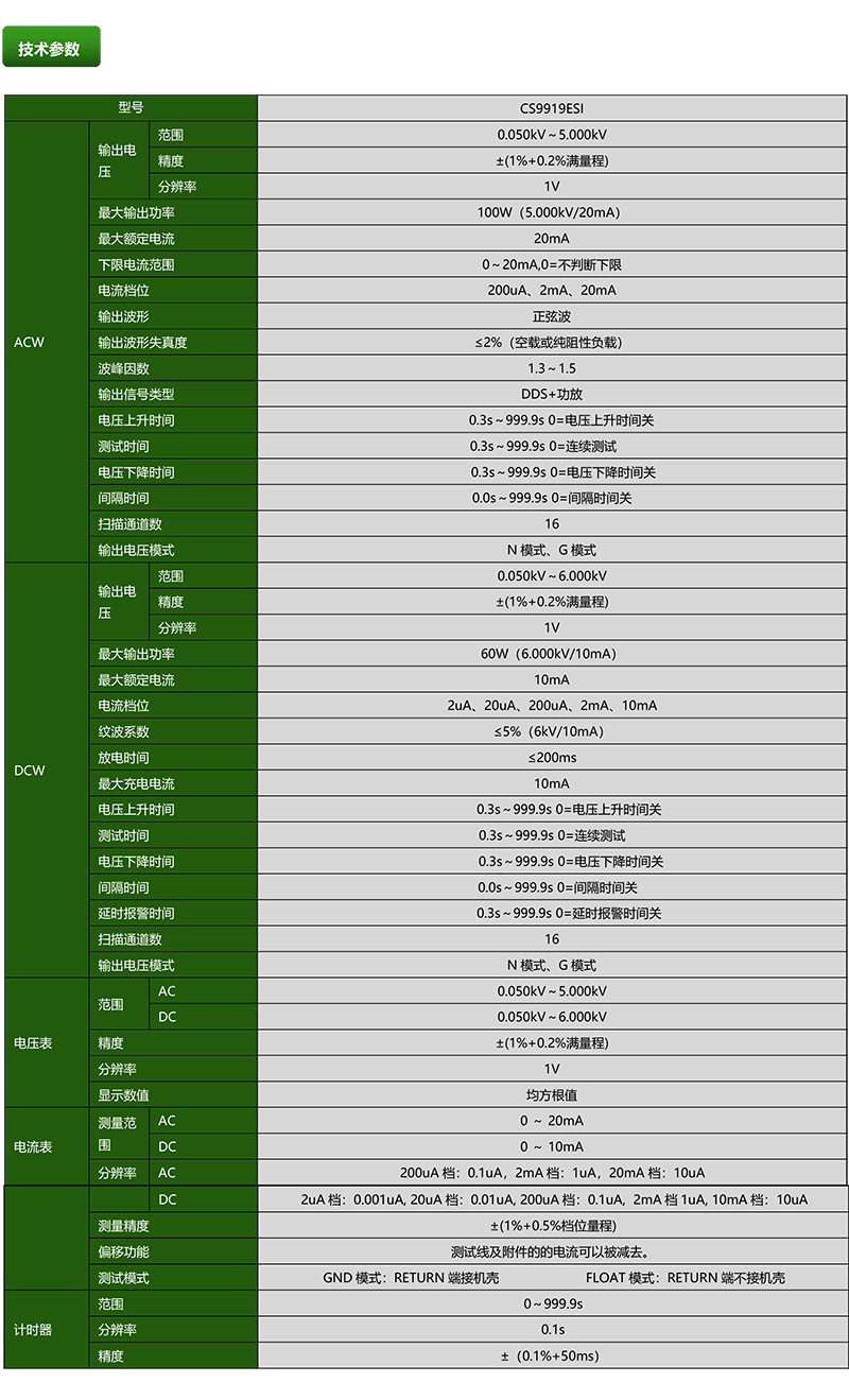 CS9919ESI程控多路耐压测试仪产品参数