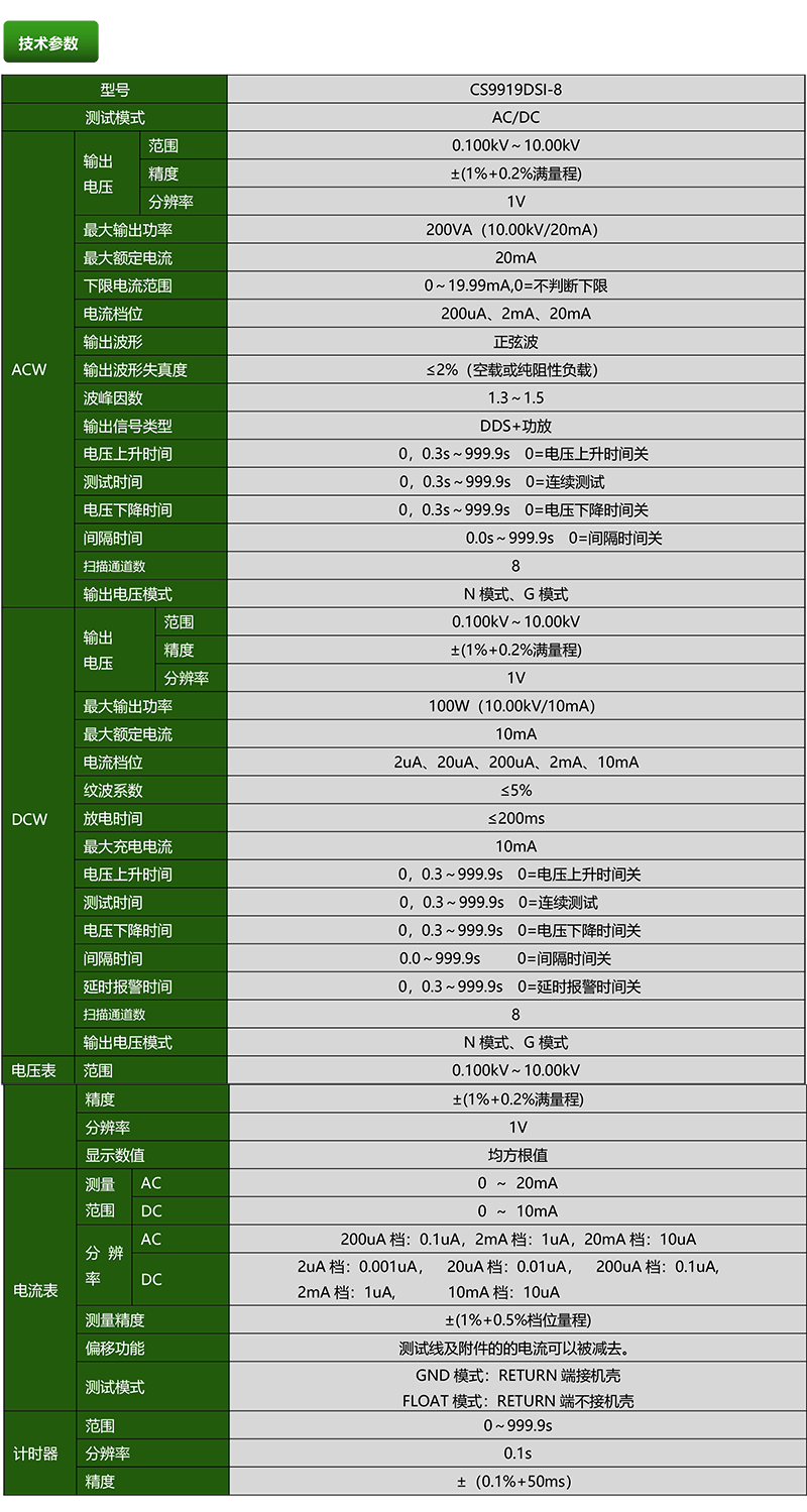 CS9919DSI-8程控多路耐压测试仪产品参数