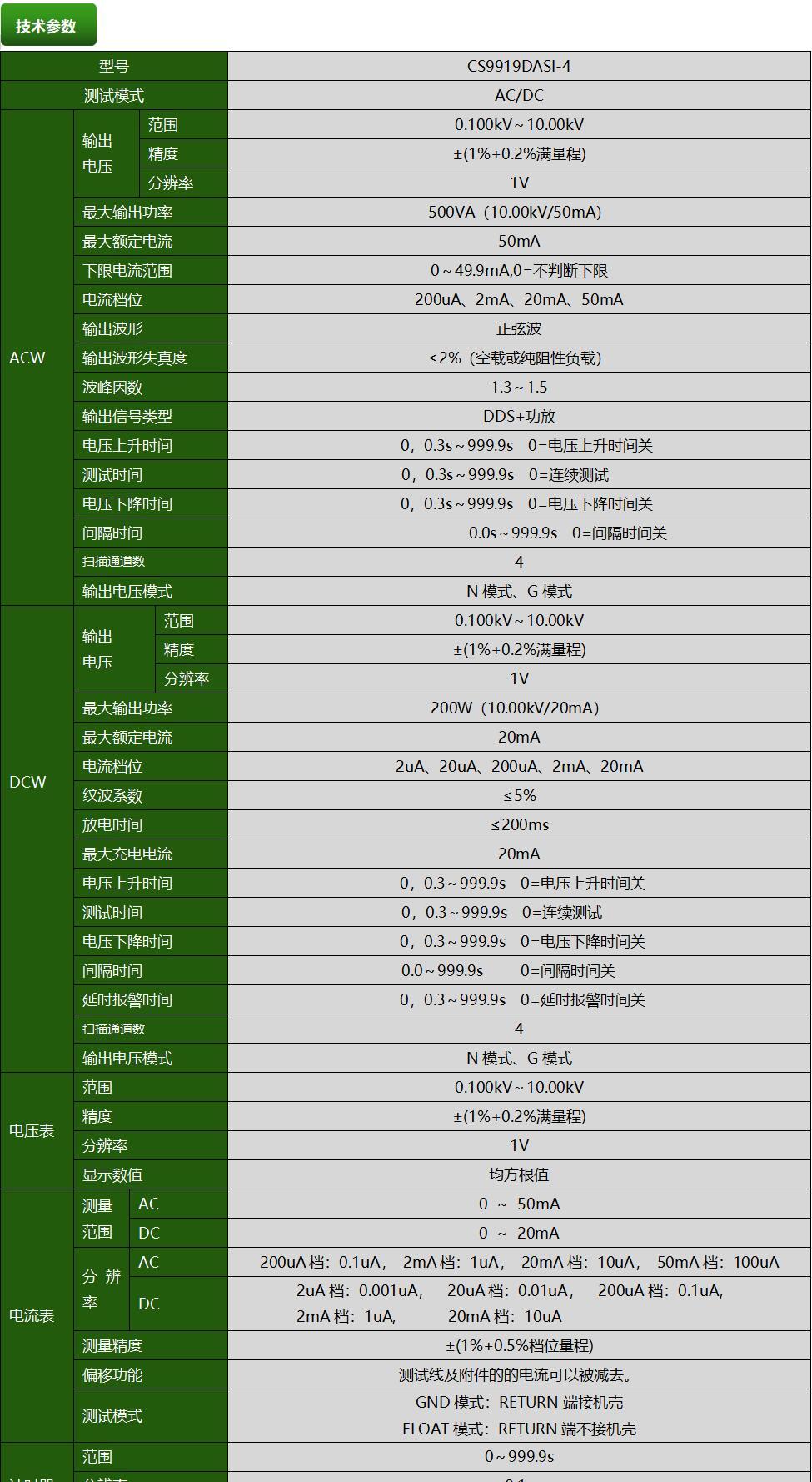CS9919DASI-4程控多路耐压测试仪产品参数