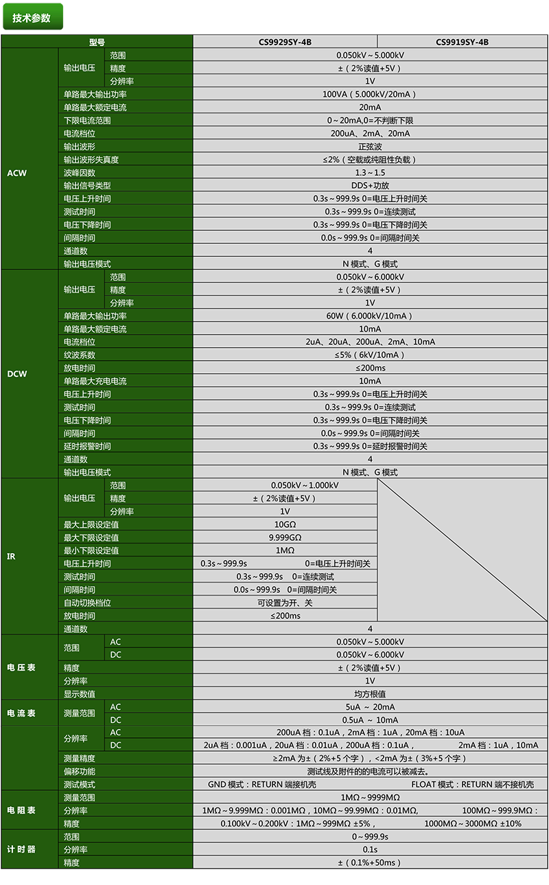 CS9929SY-4B多路同步绝缘耐压测试仪产品参数