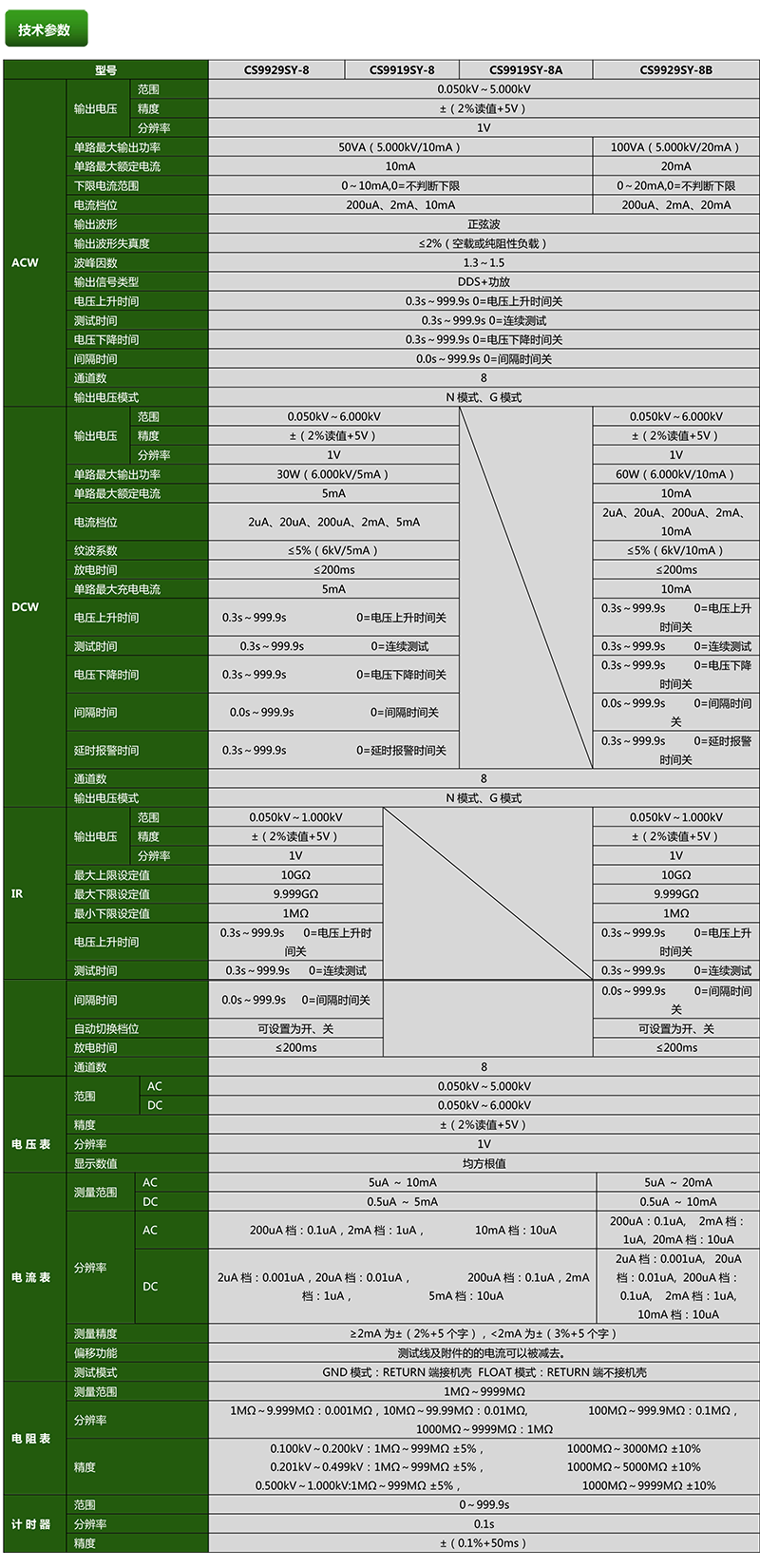 CS9929SY-8多路同步绝缘耐压测试仪产品参数