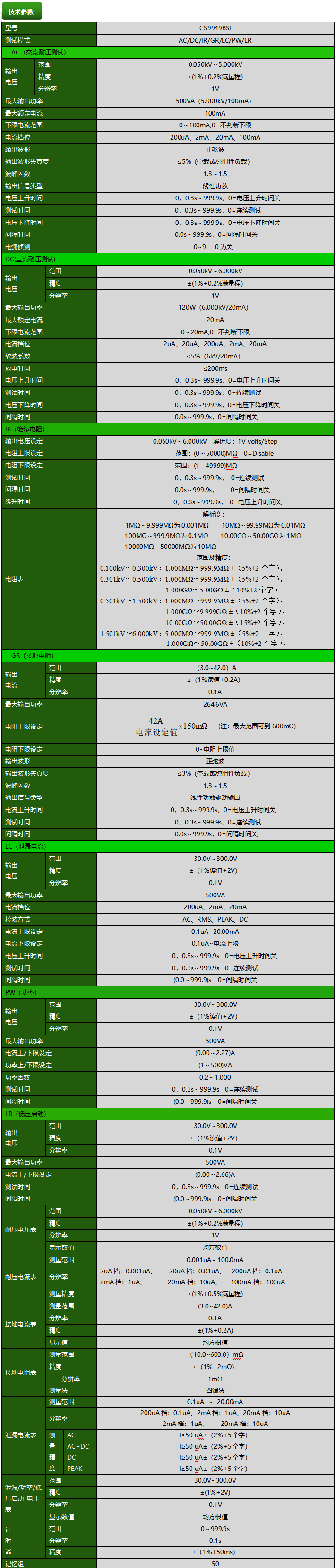 CS9949BSI程控安规综合测试仪产品参数