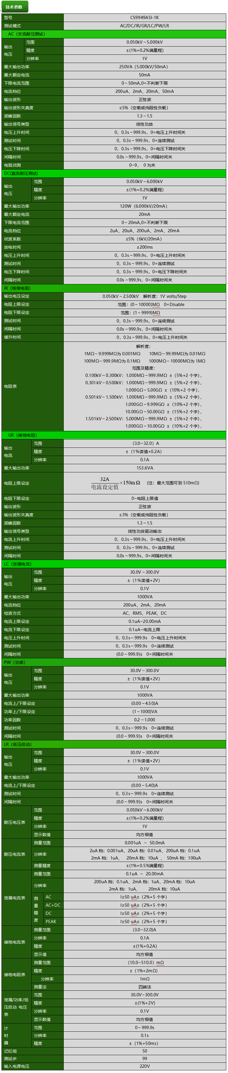 CS9949ASI-1K程控安规综合测试仪产品参数