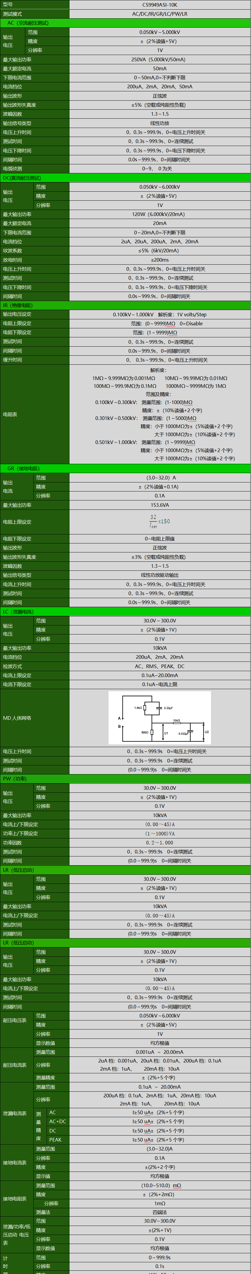 CS9949ASI-10K程控安规综合测试仪产品参数