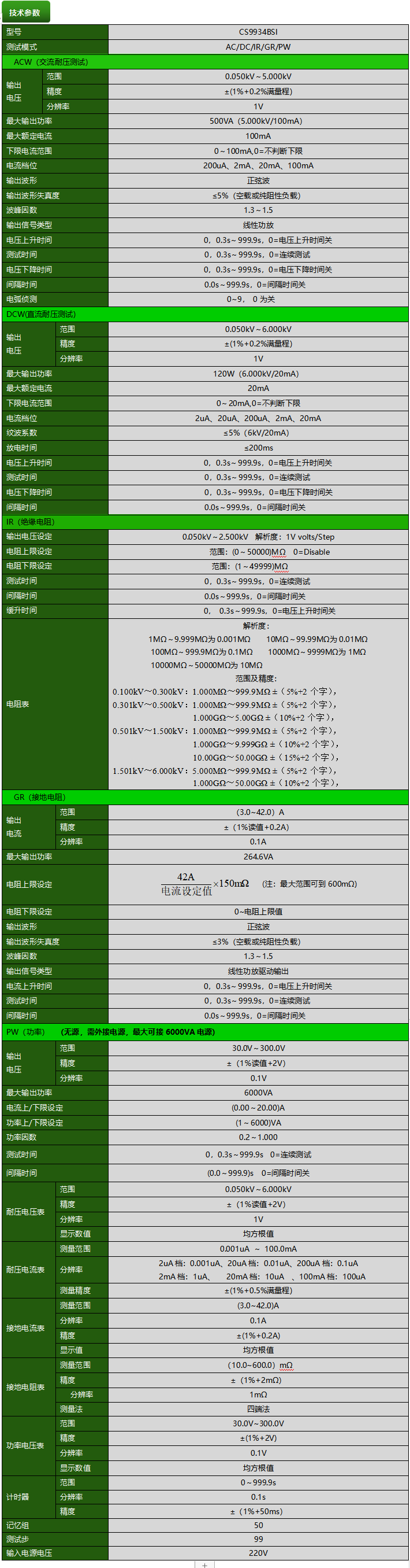 l具有双频综合测试,频率范围50 Hz、60 Hz。