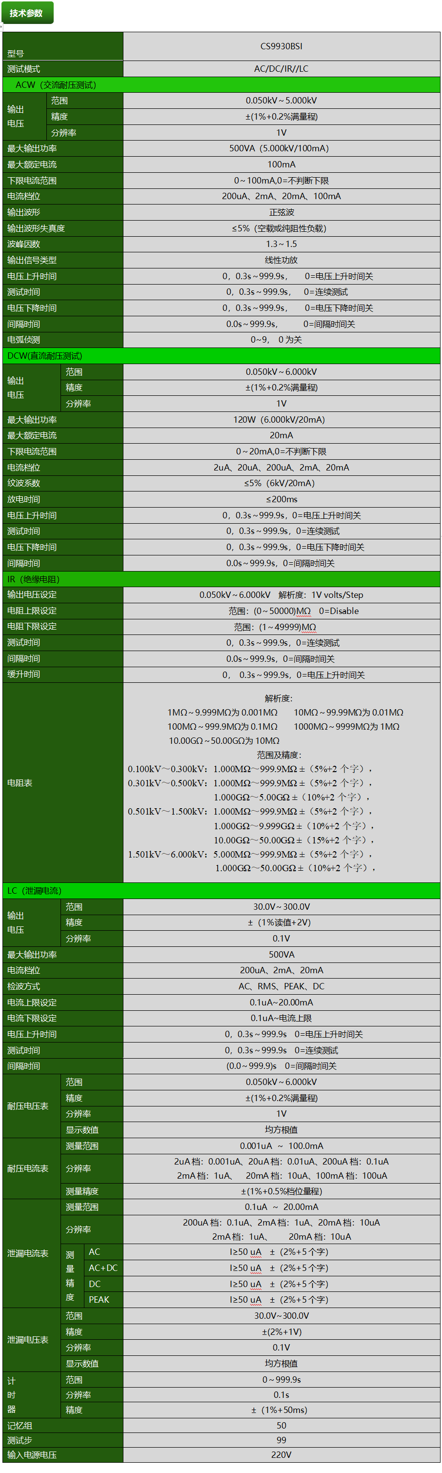 l具有双频综合测试,频率范围50 Hz、60 Hz。