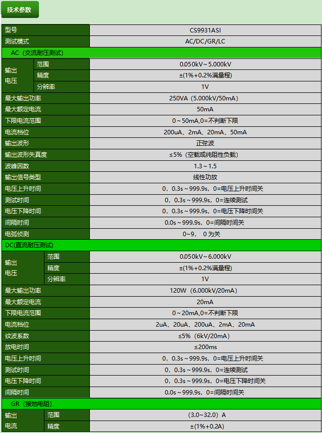 l具有双频综合测试,频率范围50 Hz、60 Hz。