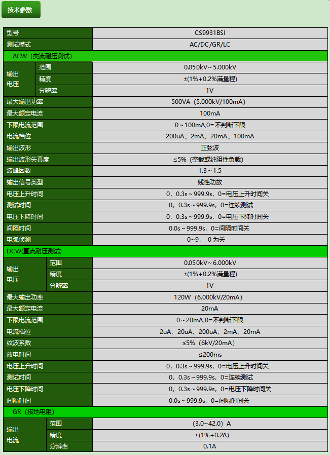l具有双频综合测试,频率范围50 Hz、60 Hz。