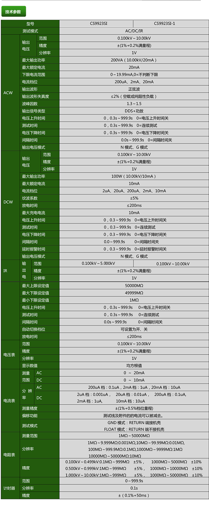 CS9923SI系列程控绝缘耐压测试仪产品参数