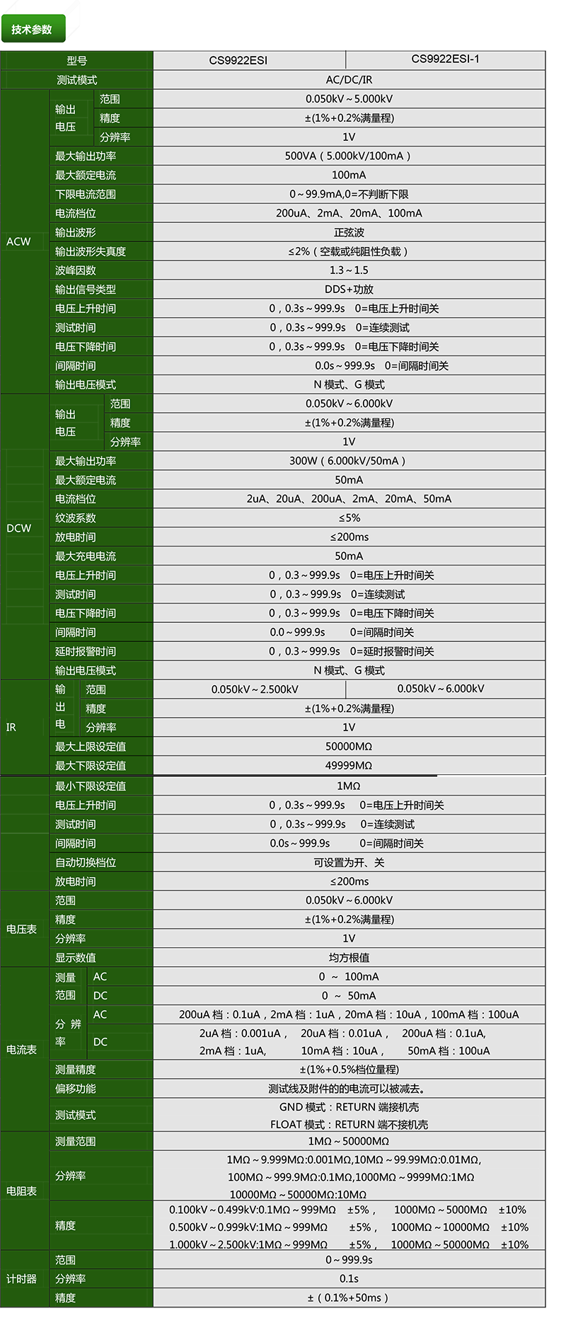 CS9922ESI程控绝缘耐压测试仪产品参数