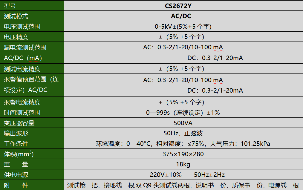 CS2672Y医用耐压测试仪(AC/DC)产品参数